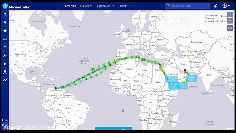 ویدئویی از حرکت همزمان ۵ نفتکش ایرانی به سمت ونزوئلا
