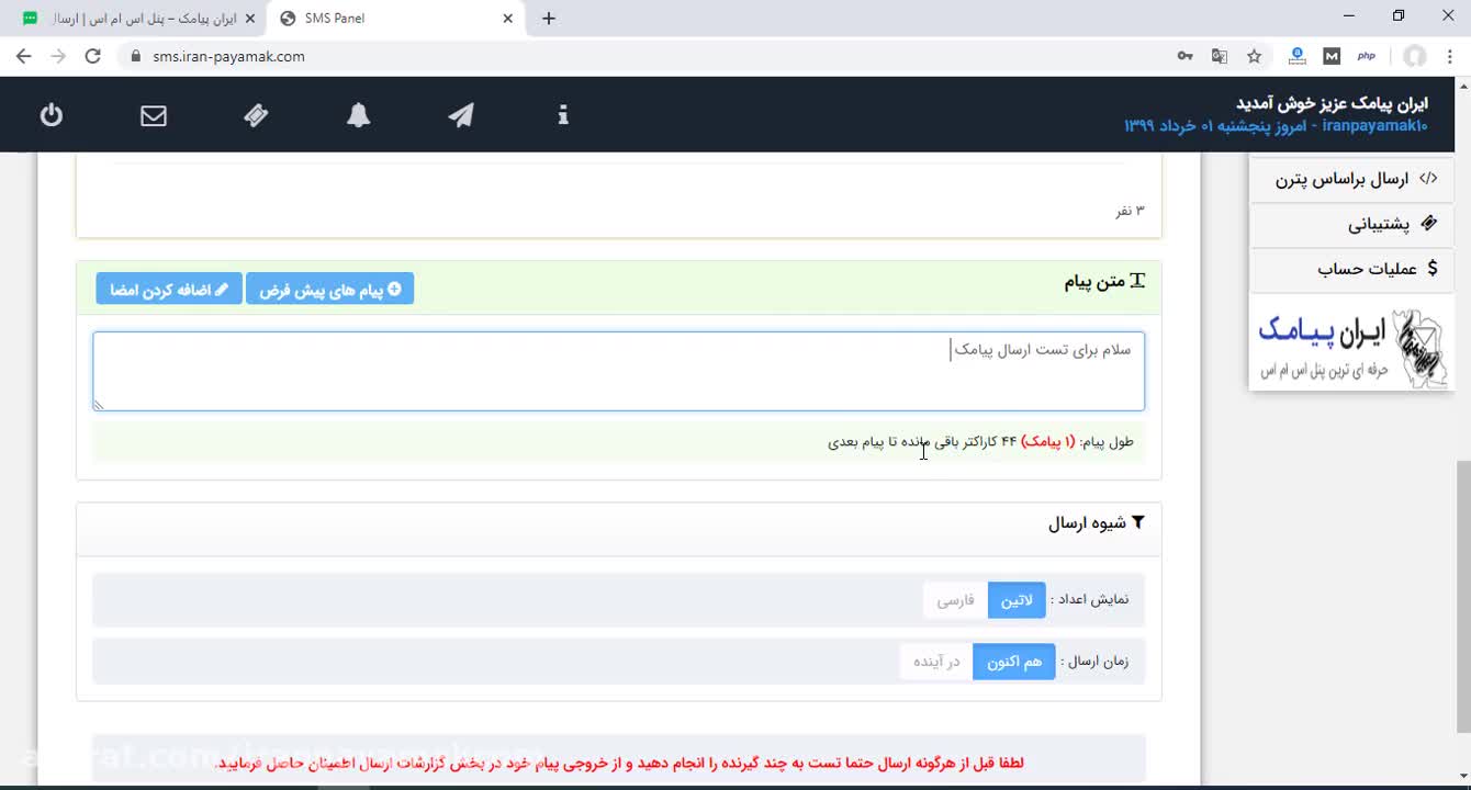 راهنمای ارسال پیامک در پنل اس ام اس ایران پیامک