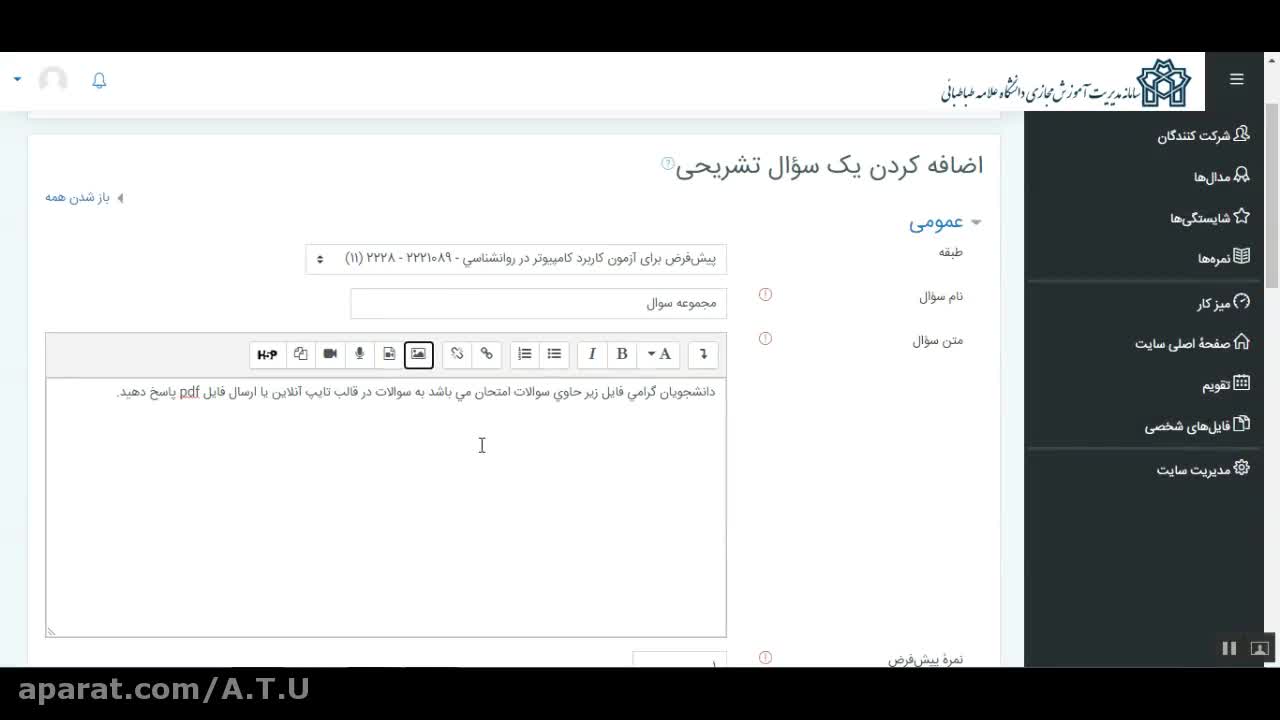 سامانه اموزش مجازی ؛راهنمای اضافه کردن چند سوال تشریحی در قالب یک فایل