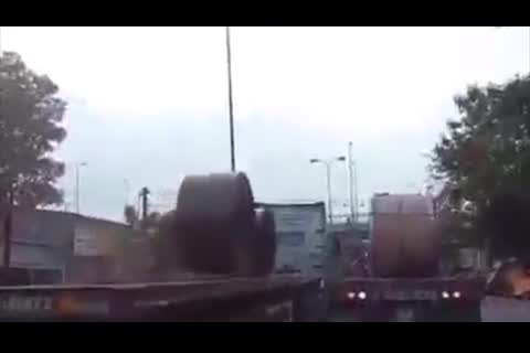 حادثه شدید به خاطر نبستن اصولی بار روی کامیون!