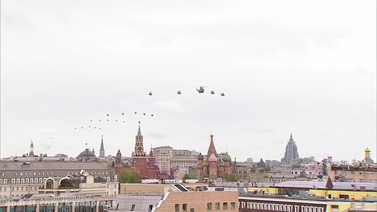 رژه جنگنده ها و بمب افکن های استراتژیک روسیه بر فراز مسکو