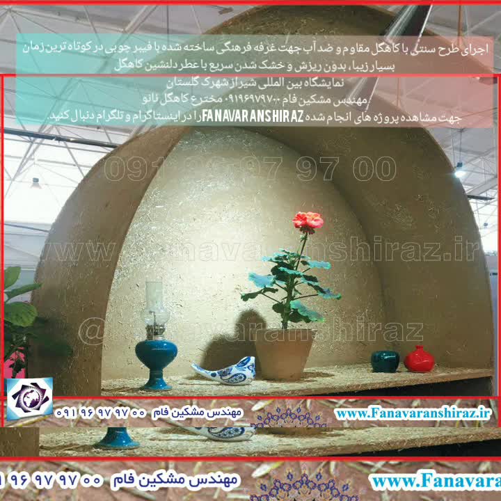 کاهگل - اجرای کاهگل ضد آب جهت غرفه فرهنگی در نمایشگاه بین المللی شیراز