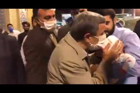 بوسیدن یک نوزاد توسط احمدینژاد در قم