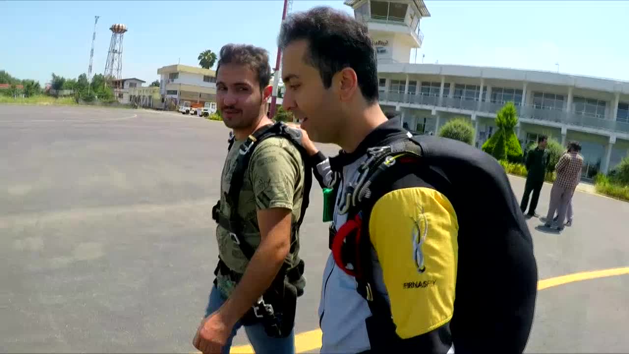 چتربازی سقوط آزاد آیدین زواره ای در فرودگاه رامسر